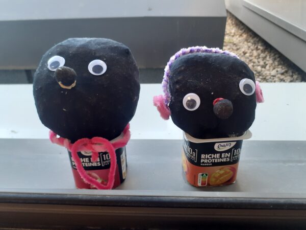 Les élèves du club écologie du vendredi midi ont réalisé des Mr et Mme Patate à partir de vieux collants et de graines pour oiseaux. Venez nous rejoindre si vous aussi vous aimez les activités nature!
