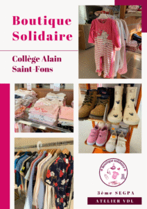 Après le succès de sa première édition, la Boutique Solidaire de l’atelier Vente-Distribution-Logistique (VDL) des élèves de 3ᵉ SEGPA rouvre exceptionnellement ses portes le jeudi 4 décembre 2025, de 8h30 à 11h30, au sein du collège Alain à Saint-Fons.