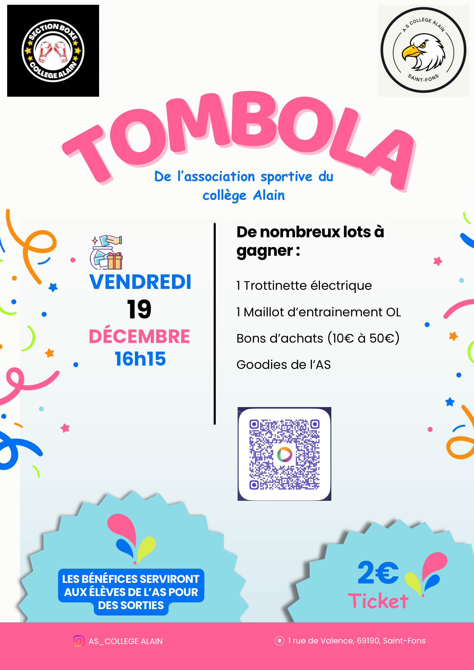 L’association sportive du collège et la section sportive boxe organisent une tombola afin de financer les projets sportifs de l’année scolaire 2025-2026.